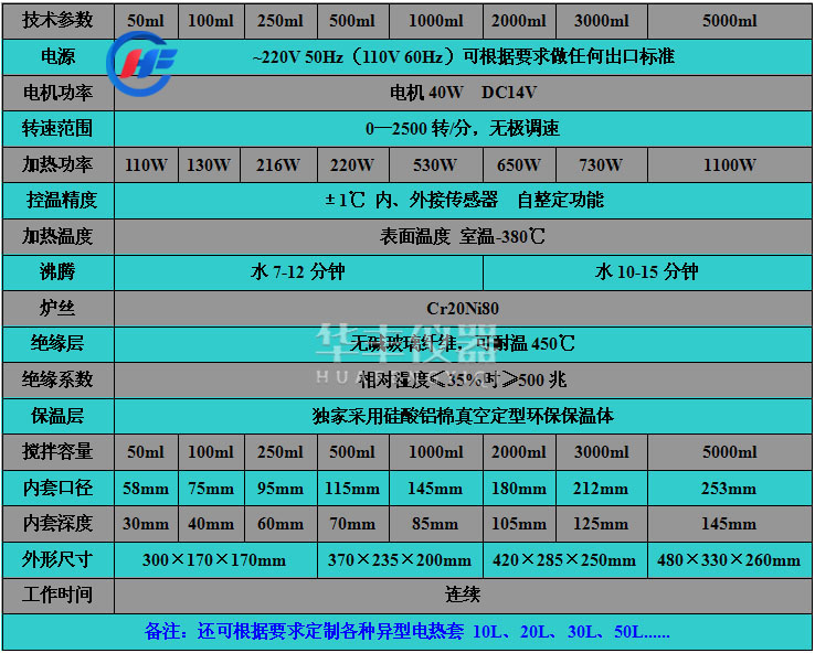 2.可對50-10000ml標準或非標準反應瓶進行加熱攪拌。